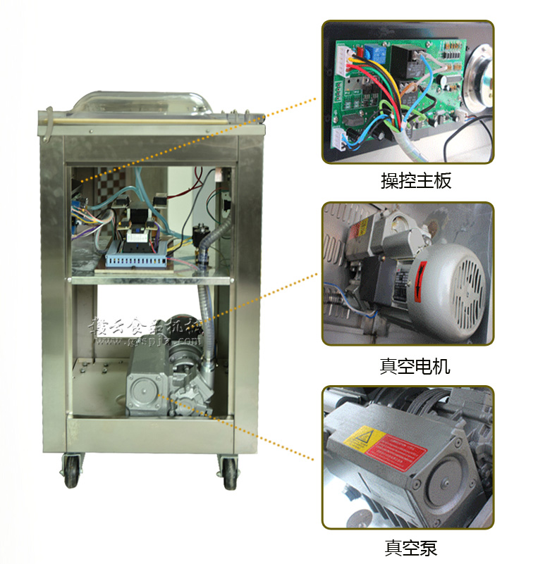 3、壓下真空蓋,面板上的抽氣指示燈亮,真空泵開始抽氣,機(jī)蓋即被自動(dòng)吸引,抽真空時(shí)間可根據(jù)包裝要求調(diào)節(jié)適當(dāng)時(shí)間。