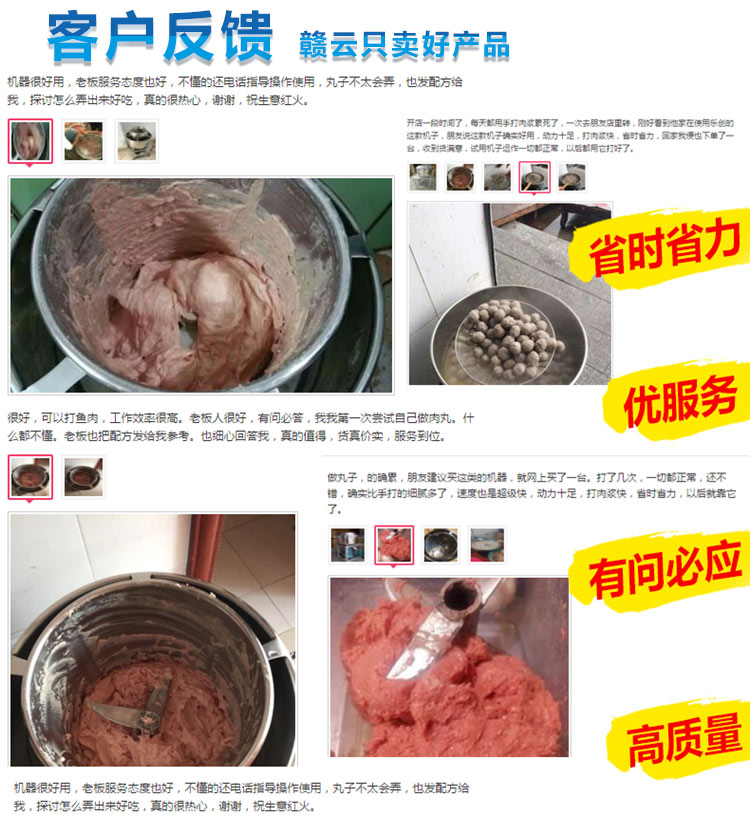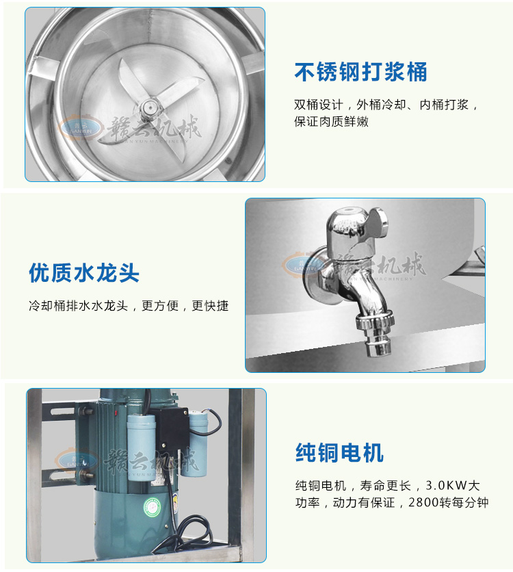 贛云牌全不銹鋼傳動高速肉丸打漿機,整機采用優(yōu)質不銹鋼材質,拉伸桶底部弧形設計,贛云新款肉丸打漿機標志性設計。無縫焊接技術展現(xiàn)高檔品質。一次性可打肉漿5-6斤,2分鐘左右即可完成肉漿的制作。所打肉漿細膩,是肉丸專用打漿設備之一。