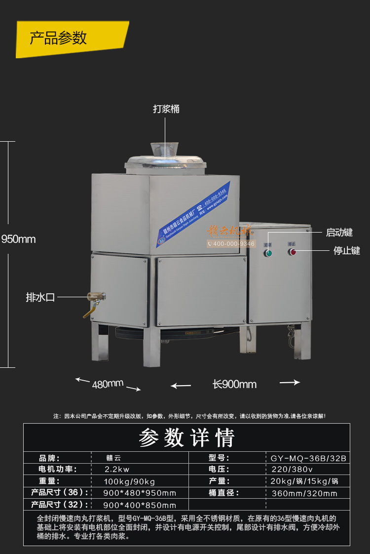 款全封閉慢速肉丸打漿機(jī),型號GY-MQ-32B型,采用全不銹鋼材質(zhì),在原有的32型慢速肉丸機(jī)的基礎(chǔ)上將安裝有電機(jī)部位全面封閉,并設(shè)計有電源開關(guān)控制,尾部設(shè)計有排水閥,方便冷卻外桶的排水,以全新的面貌上市。贛州市贛云食品機(jī)械廠,致力于打造魚肉丸加工設(shè)備影響力企業(yè)之一!