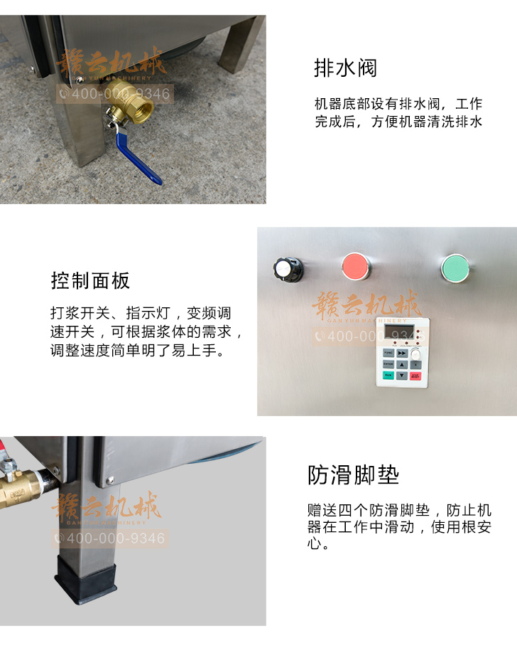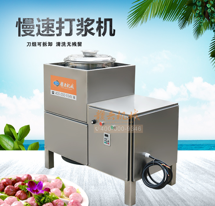 贛云牌36型全封閉式慢速變頻肉丸打漿機(jī)選優(yōu)質(zhì)不銹鋼,在全不銹鋼慢速肉丸打漿機(jī)基礎(chǔ)上將整機(jī)外殼用不銹鋼板材封裝,更好的保護(hù)電動(dòng)機(jī),通過(guò)小皮帶輪帶動(dòng)大皮帶輪減速,慢速拍打肉漿。