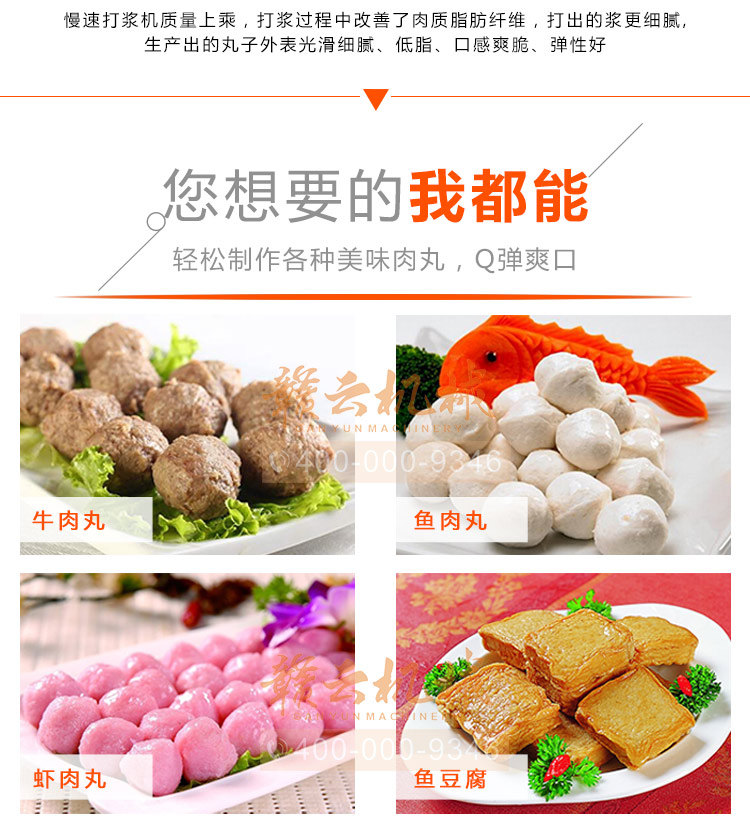中大型魚丸打漿機(jī)采用全不銹鋼材質(zhì),有效的保護(hù)了電動(dòng)機(jī),操作上更安全,制作魚丸更衛(wèi)生,42型慢速肉丸打漿機(jī)可一次加工50斤左右魚漿,是中型魚丸,牛肉丸加工首先選慢速拍打設(shè)備之一,贛云歷經(jīng)十年品質(zhì),為您加工魚丸,牛肉丸等設(shè)備保駕護(hù)航。