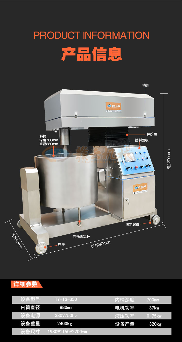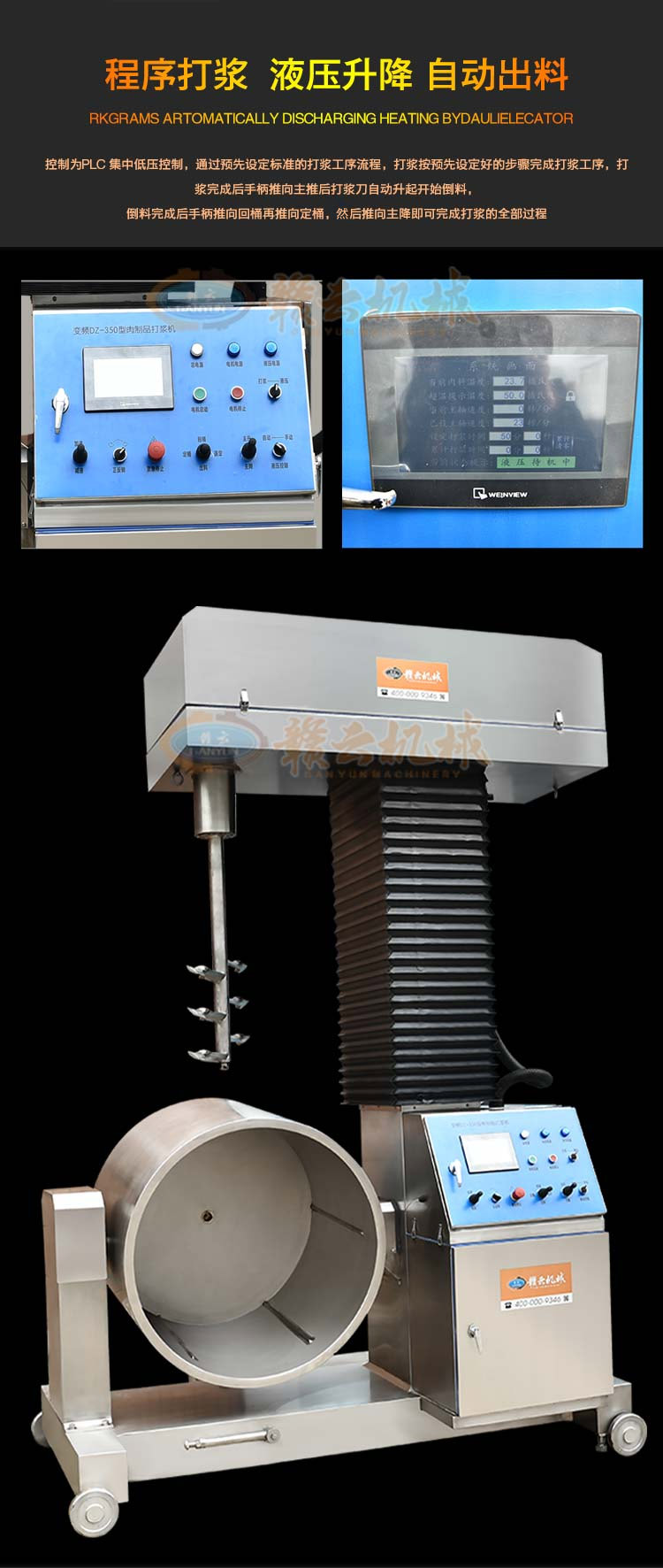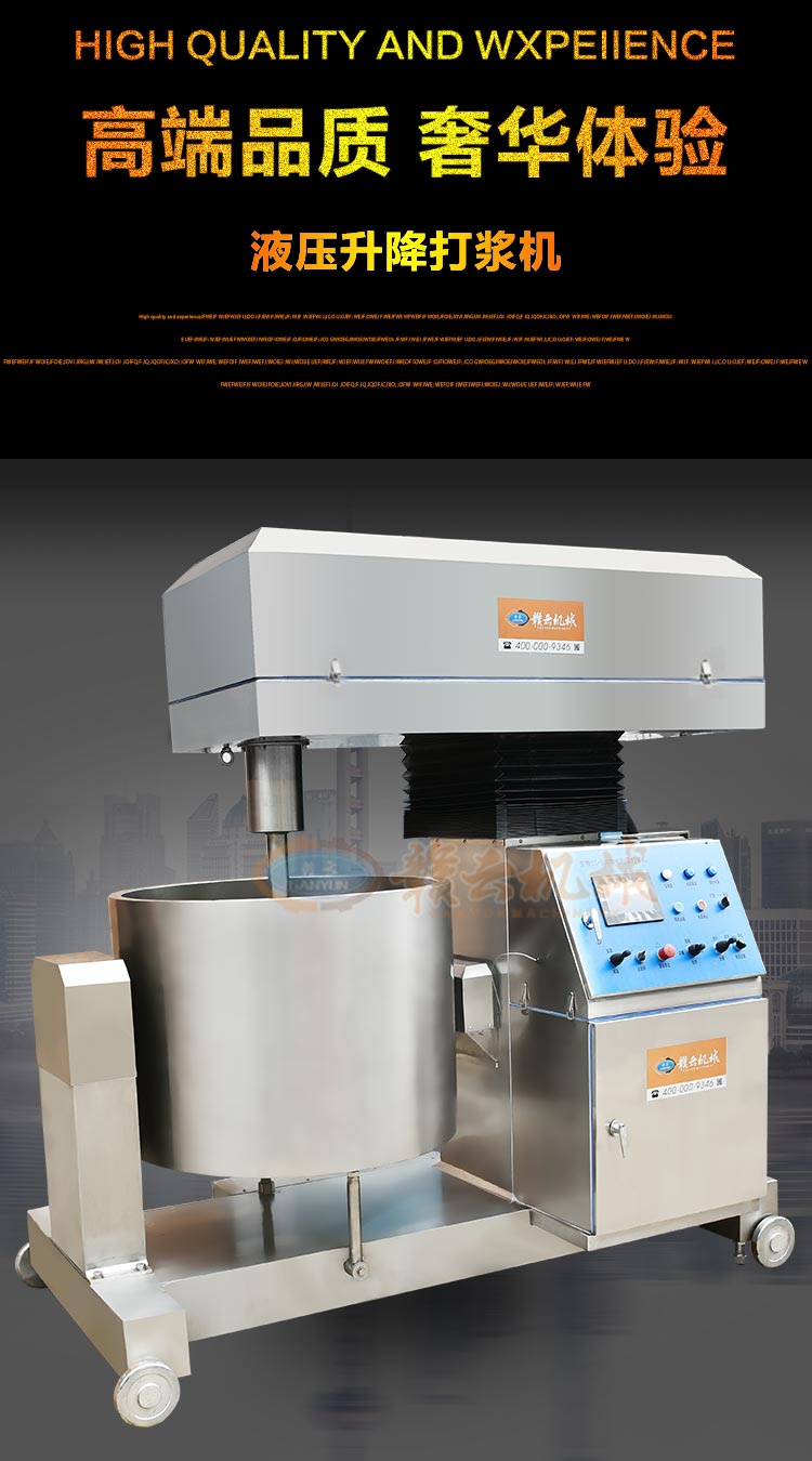 變頻調(diào)速液壓打漿機(jī)是肉丸、貢丸、魚丸、臺(tái)灣烤腸等多種肉制品(特別為中高檔產(chǎn)品)的主要打漿設(shè)備,其產(chǎn)品的口感效果、組織結(jié)構(gòu)、成本控制等技術(shù)環(huán)節(jié)均在于打漿機(jī)的選用,在打漿升降過程中穩(wěn)定性好,打漿速度快,機(jī)座穩(wěn)固可靠。