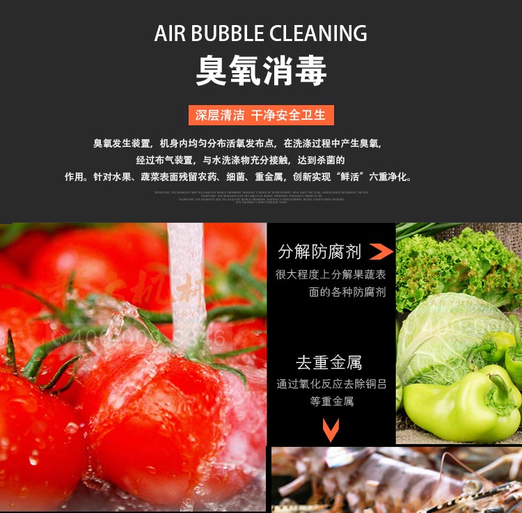 蔬菜清洗機有效的殺滅有害細菌,分解殘留農(nóng)藥;通過清洗水循環(huán)利用,可節(jié)約80%的清洗用水用于清洗蘑菇、芹菜、菠菜、白菜等莖葉類蔬菜以及蘋果、西紅柿、辣椒、茄子、黃瓜、草莓等果蔬的主要設備,廣泛適用于蔬菜加工行業(yè)及廠礦、部隊、醫(yī)院、各大專院校等單位的食堂。