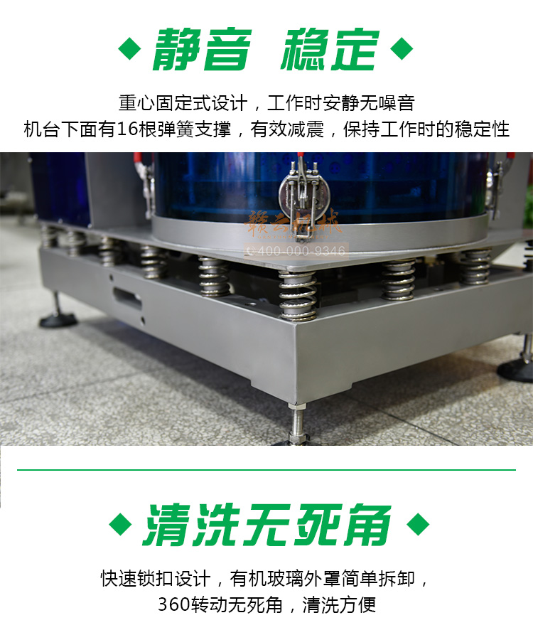 (1)穩(wěn)定性。工作時(shí),機(jī)臺(tái)下面有16根彈簧支撐,保持工作時(shí)的穩(wěn)定性。