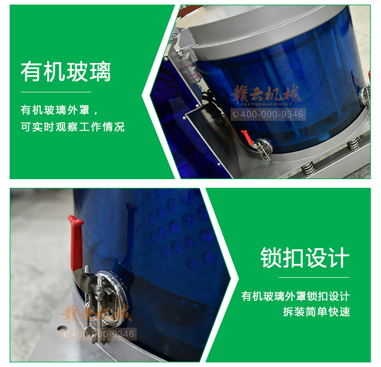 (2)低噪音。機(jī)臺(tái)工作時(shí)比較靜,打破目前市場上脫水機(jī)工業(yè)用的大噪音。
