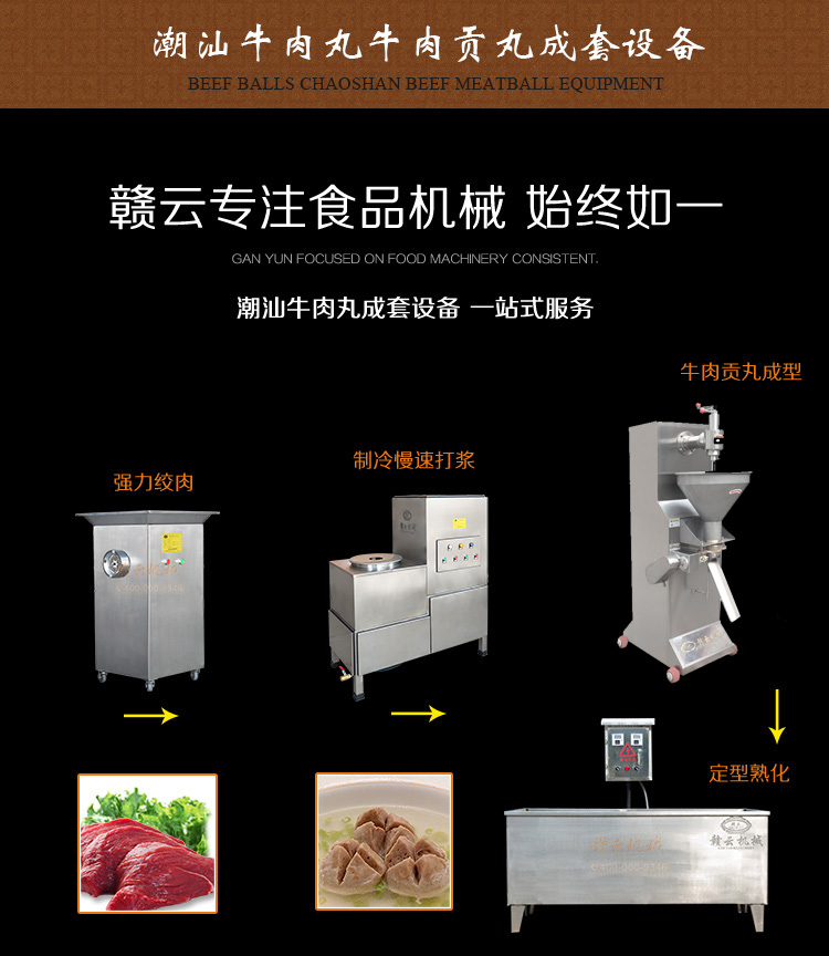 潮汕牛肉丸成套設(shè)備,本套設(shè)備專為潮汕牛肉丸加工定制,采用強(qiáng)力碎肉、慢速拍打、貢丸成型、自動(dòng)熟化和真空包裝設(shè)備組合而成,適合潮汕人加工正宗潮汕牛肉丸用,改傳統(tǒng)工藝為機(jī)械化生產(chǎn)潮汕牛肉丸,1-2人只需1個(gè)小時(shí)即可完成日常加工一天工作量或十多人的產(chǎn)量。時(shí)產(chǎn)50kg潮汕牛肉丸。