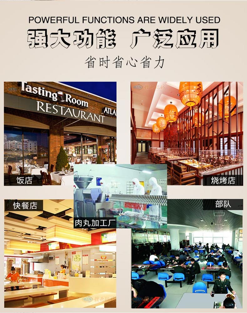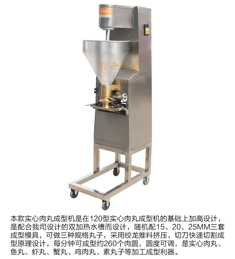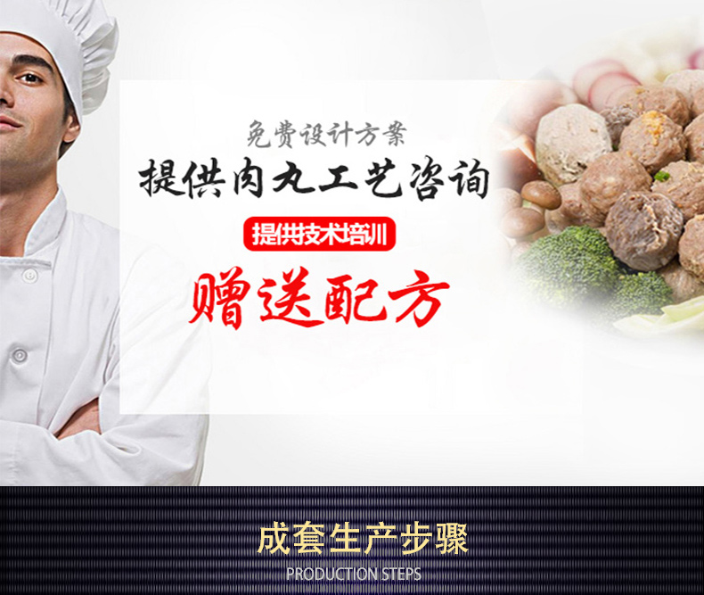 本套設(shè)備由32型絞肉機(jī)、28型高速(慢速)打漿機(jī)、加高成型機(jī)、熟化成型設(shè)備(雙溫水槽)4太設(shè)備組合而成,專業(yè)生產(chǎn)實心肉丸,日產(chǎn)100-200斤。需要場地面積:25-30平方米,供電需求:380v(三相電)可選設(shè)備:200采肉機(jī)