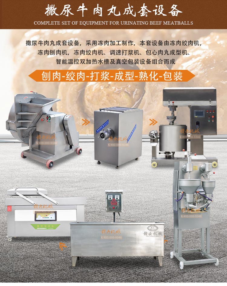 多種包心肉丸成套設(shè)備,撒尿牛肉丸成套設(shè)備組合,采用凍肉加工制作,本套設(shè)備由凍肉絞肉機,凍肉刨肉機,調(diào)速打漿機,包心肉丸成型機和自動煮丸水槽及真空包裝設(shè)備組合而成。