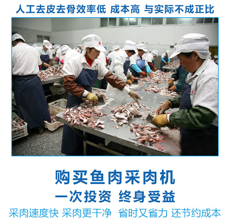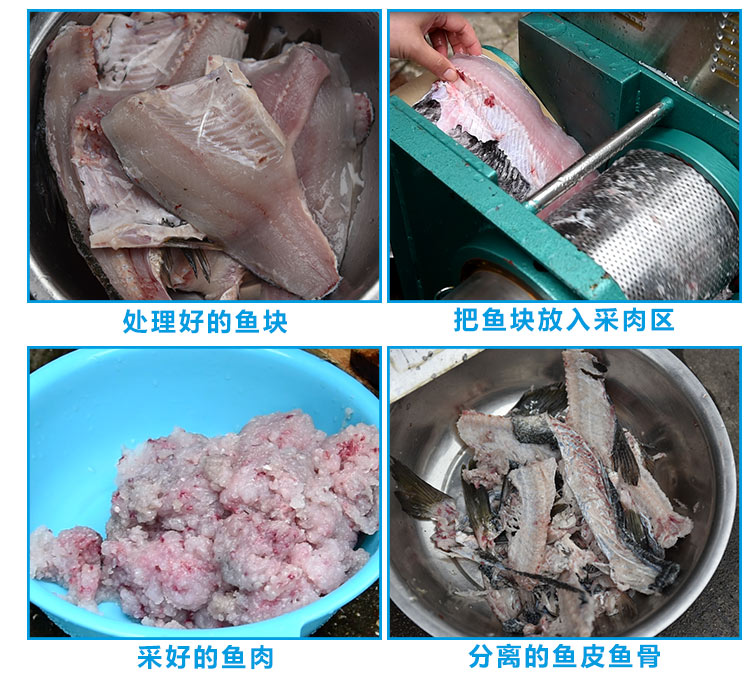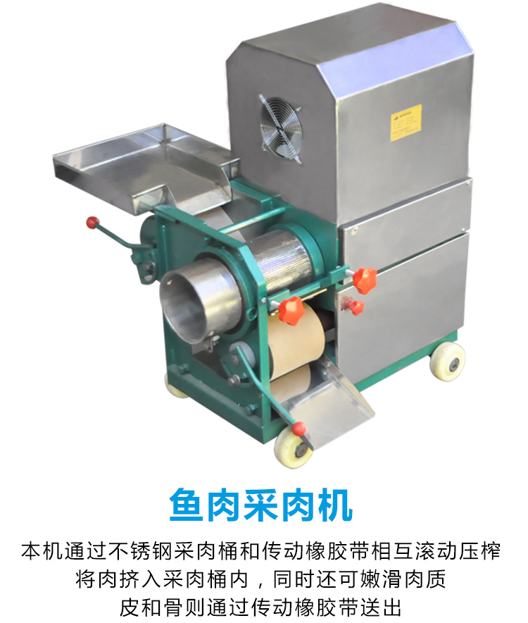 該機器除了可采淡水魚肉,還可采海魚肉、蝦、蟹、泥鰍等,比手工采肉效率更高,成本更低、干凈衛(wèi)生,是魚糜制品前期處理的設(shè)備之一。配套的還有魚糜精濾機,我廠生產(chǎn)的普通款魚肉采肉機有160型和200型兩種型號,全不銹鋼材質(zhì)的有200型、300型和350型;魚糜精濾機有100型、200型和300型三種型號。