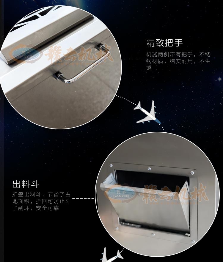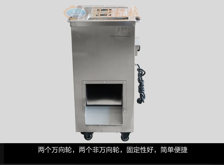 不銹鋼切肉機(jī)不銹鋼切肉機(jī),進(jìn)料口鏤空設(shè)計(jì),方便看到下料進(jìn)度,進(jìn)料口防護(hù)蓋板材加厚,堅(jiān)固耐用。鋒利刀片,刀間距3.5mm,切切肉片、肉絲、肉粒。防水旋鈕開關(guān)。折疊出料口,節(jié)省空間,推回可防止料斗刮壞。側(cè)板拆卸可看到電機(jī)。304不銹鋼機(jī)身,兩個(gè)萬向輪,兩個(gè)非萬向輪,容易固定,省心。