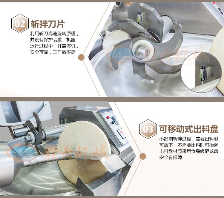 斬拌機(jī)是肉類制品生產(chǎn)制作工藝中的一個關(guān)鍵設(shè)備,斬刀的高速旋轉(zhuǎn)將原料斬碎,同時料鍋的旋轉(zhuǎn)使原料斬拌均勻。適用于制作腸類、丸類等肉制品加工設(shè)備,它不僅能將塊狀原料精細(xì)的切碎,還能同時將其它的原料,如水、調(diào)味品等附加原料一起攪拌成均勻的乳狀物,提高原料的乳化程度,且不會出現(xiàn)拖油現(xiàn)象,對改善產(chǎn)品的口感,提高產(chǎn)品的出品率起到了關(guān)鍵的作用。適用范圍:廣泛應(yīng)用于蔬菜加工、肉類加工、豆制品加工等,是生產(chǎn)肉丸,烤腸類、千頁豆腐、魚豆腐,餡料斬切加工,雞蛋干制作等的推薦設(shè)備。