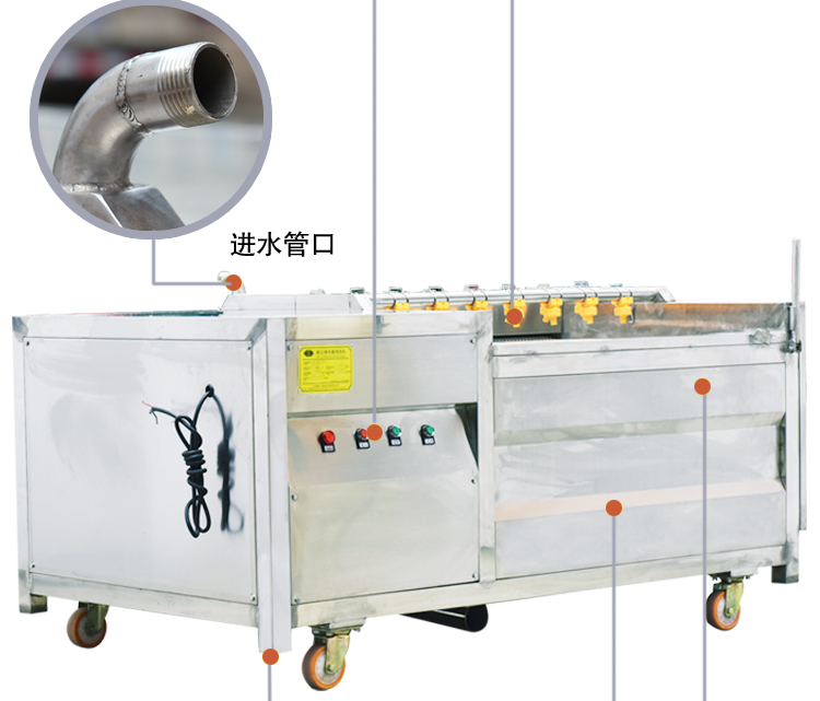 毛輥式連續(xù)自動清洗機采用食品級不銹鋼制造而成、堅固耐用,毛輥全部采用優(yōu)質(zhì)樹脂、韌性高、耐磨性好,從而達到洗潔凈高、節(jié)省勞力、節(jié)水。