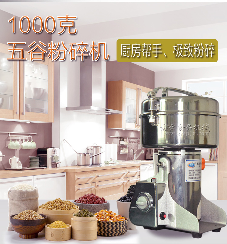 贛云系列中藥五谷粉碎機又稱打粉機,采用超高速純銅電動機帶動粉碎刀快速將物料打成粉碎狀,固又稱之為高速粉碎機,打粉機,我廠生產(chǎn)的多功能粉碎機可容納100克-2500克不等產(chǎn)品。這是一款1000克快速開蓋式粉碎機。