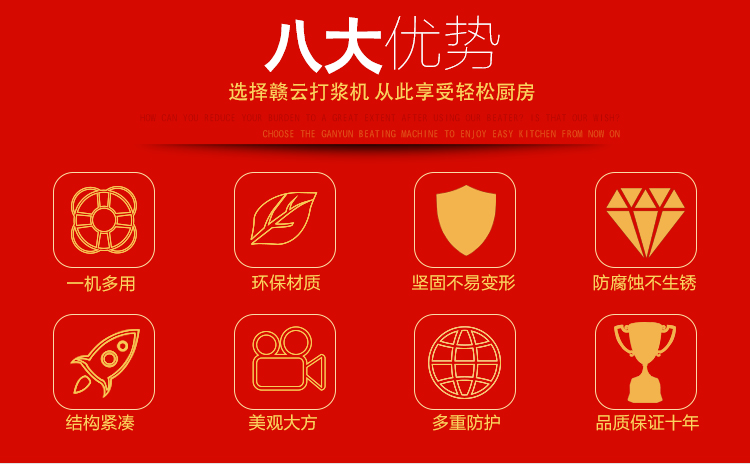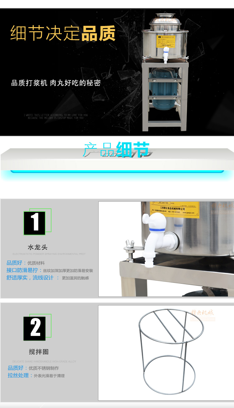 高速肉丸打漿機(jī),做豬肉丸選贛云牌直立式高速肉丸打漿機(jī)系列,家用商用選打肉泥機(jī),贛云全不銹鋼雙桶打漿機(jī),采用新無(wú)縫焊接技術(shù),弧形打漿桶,打漿效果更好,充分發(fā)揮機(jī)器的破碎,攪拌,高速的作用!配上贛云3.0kw大功率純銅國(guó)標(biāo)電機(jī),質(zhì)量好的不得了。