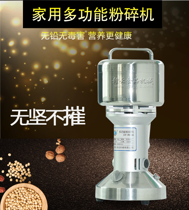 贛云系列多功能粉碎機(jī)采用純銅高速電機(jī)帶動粉碎刀片將物料快速打成粉末,可用于粉碎五谷、雜糧、田七、阿膠、白叁等,一般粉碎時(shí)間1-2分鐘即可,新款粉碎機(jī)改保險(xiǎn)絲為空氣過載保護(hù)器,使用更安全,我廠提供的粉碎機(jī)有100克-2500克不同型號的多功能粉碎機(jī)。