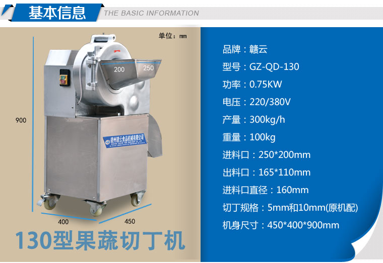 GY-QD-130型專用切丁機(jī)主要部件采用鋁合金和不銹鋼材質(zhì),以保證長期工作不生銹、不腐蝕、無毒、無害,符合食品衛(wèi)生加工要求,適用于脫水蔬菜、速凍蔬菜加工及食品醬菜行業(yè)加工各種根、莖類蔬菜成小立方體或長方體形狀,該機(jī)采用復(fù)合刀具,一次成型,形狀規(guī)則、切片光滑,成型效率高,操作方便、能耗低,深受食品加工伙伴青睞。