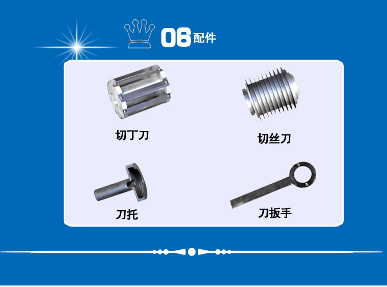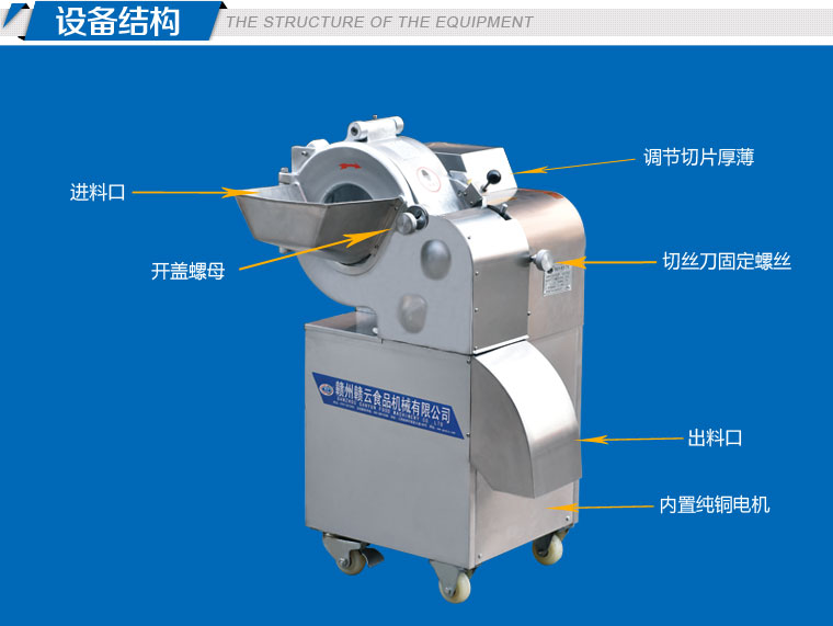 工作原理:gy-dq-130型切丁機(jī)通過旋轉(zhuǎn)撥盤將被切物體帶動高速旋轉(zhuǎn),利用物體的離心力,立刀將物體切成片狀,然后經(jīng)過圓盤切絲刀片豎切成條狀,并將條狀物送入橫切斷刀口,由橫切斷刀盤切刀切成所需的長方體或立方體。