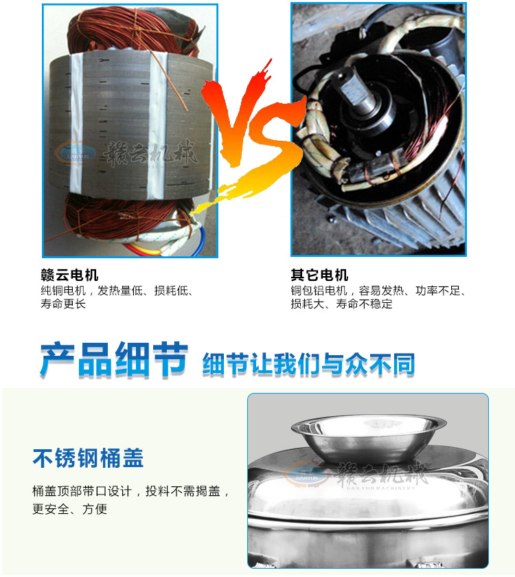 贛云牌全不銹鋼傳動高速肉丸打漿機,整機采用優(yōu)質不銹鋼材質,拉伸桶底部弧形設計,贛云新款肉丸打漿機標志性設計。無縫焊接技術展現(xiàn)高檔品質。一次性可打肉漿5-6斤,2分鐘左右即可完成肉漿的制作。所打肉漿細膩,是肉丸專用打漿設備之一。