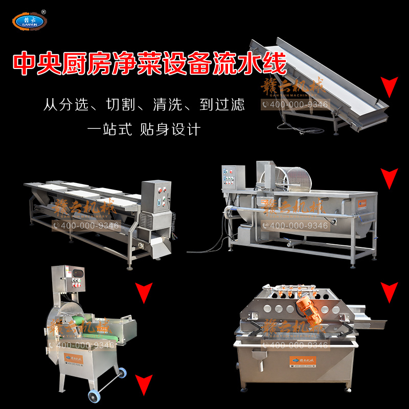 果蔬加工機(jī)械->凈菜加工設(shè)備->中央廚房?jī)舨嗽O(shè)備流水線 | |||||||