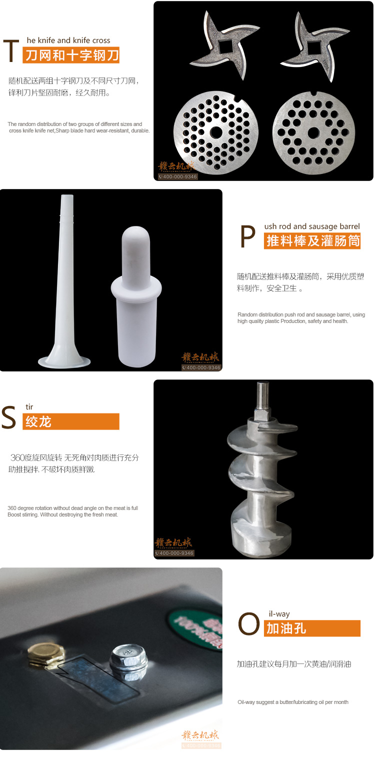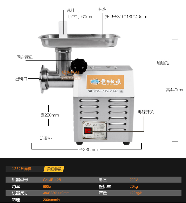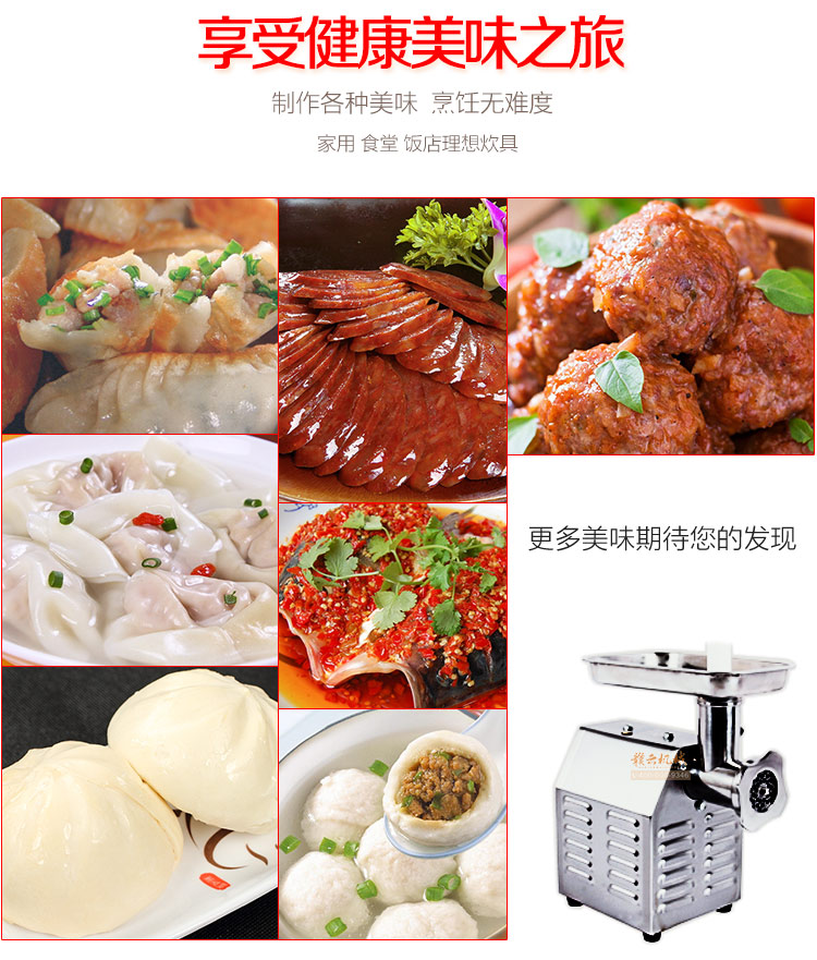 贛云臺式電動12型絞肉機,出新款了,簡介美觀的外形設(shè)計,配備650w大功率純銅電機,有效確保動力充足,可絞各種肉類,干貨,鮮蔬等食品
