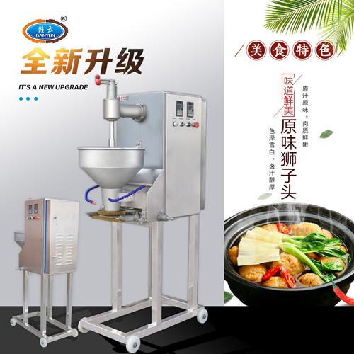 獅子頭機又名為大肉丸成型機,能做直徑45mm-65mm范圍的大肉丸,成型效果好,圓度好,表皮光滑,結(jié)實有彈性,是獅子頭成型推薦設(shè)備。采用雙速電機分別控制成型速度,可調(diào)性靈活,操作簡單。