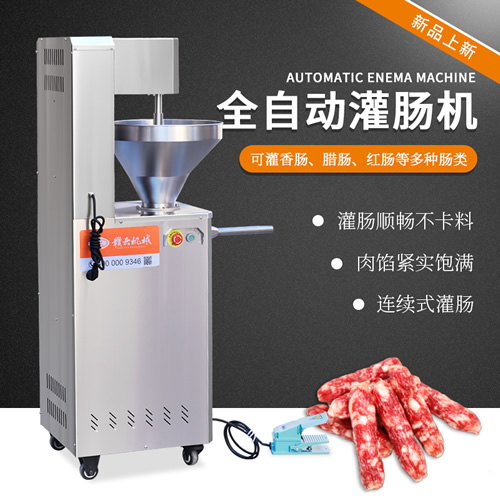 贛云牌立式全自動灌腸機(jī),根據(jù)多次的機(jī)器實地使用和存在不足之處反復(fù)改造后的全新配置升級,采用不銹鋼機(jī)身,機(jī)頭使用可拆卸,方便機(jī)器清洗,速度平衡穩(wěn)定,不銹鋼機(jī)身,腳踏控制灌腸,大功率電機(jī),無論是四川香腸、湖南臘腸、脆皮腸、山東香腸、廣式臘腸還是河南臘腸都適用,一機(jī)多用,設(shè)備滿足多重風(fēng)味香腸制作,新升級的機(jī)器加寬加大入料口,讓您進(jìn)料順暢不卡料,灌腸機(jī)可以與多臺設(shè)備聯(lián)合使用,可與切片切絲機(jī),拌餡機(jī),灌腸機(jī),香腸打結(jié)機(jī)組成,提高您的生產(chǎn)效率。