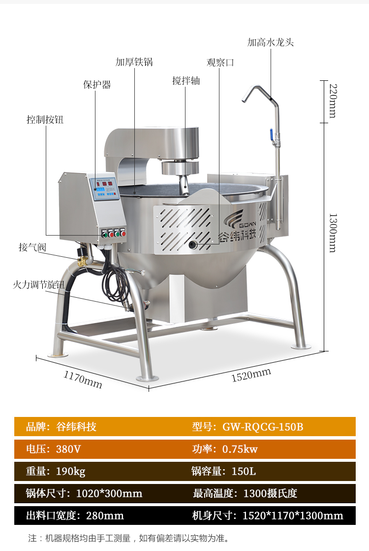 中央廚房設(shè)備->熱調(diào)理區(qū)設(shè)備->150升燃?xì)獬床藱C(jī)(帶攪拌) | |||||||||||||||||||||||||||||||||||