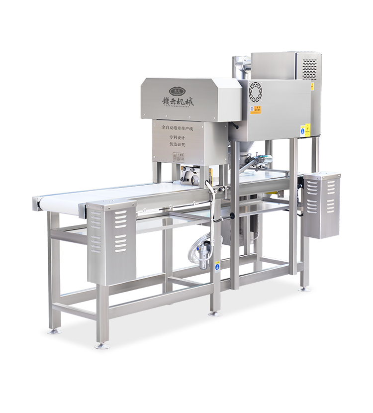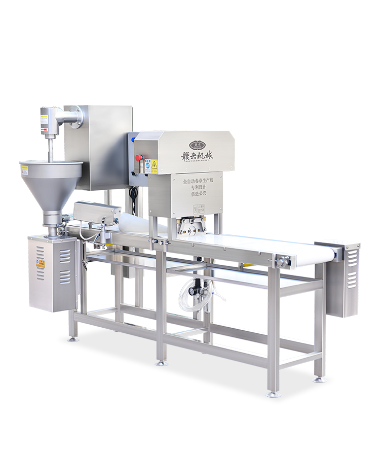 全自動卷章機(jī)也可以叫廣章機(jī),是一款取代手工制作各種潮汕廣章美食、腐皮肉卷的機(jī)器。卷章機(jī)有兩個型號,分別是單管單頭的單頭卷章機(jī)和雙管雙頭的雙管卷章機(jī)。全自動卷章機(jī)擁有自動包漿、自動肉卷成型、自動肉卷切斷,讓肉卷生產(chǎn)效果高。卷章機(jī)做出的各類肉卷美食造型美觀,機(jī)器自帶獨特錐形成型裝置,讓肉卷成型圓度好,接近手工制作的工藝。