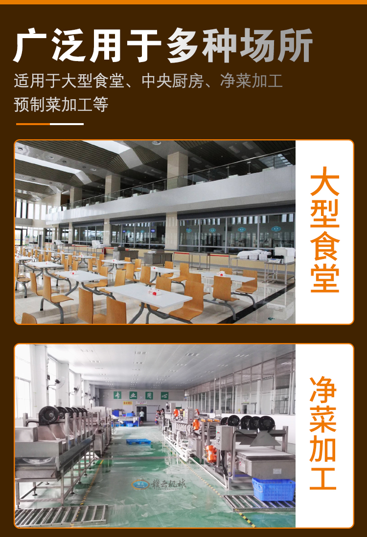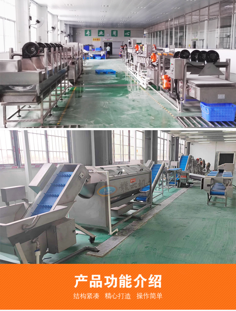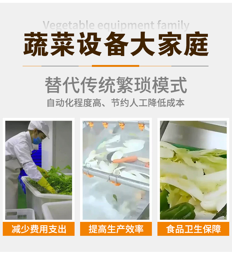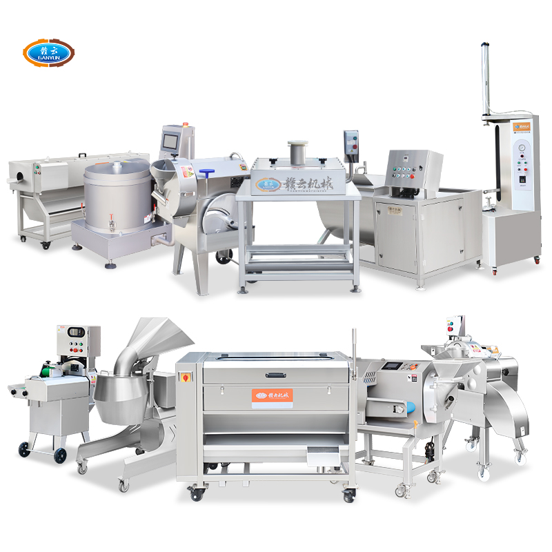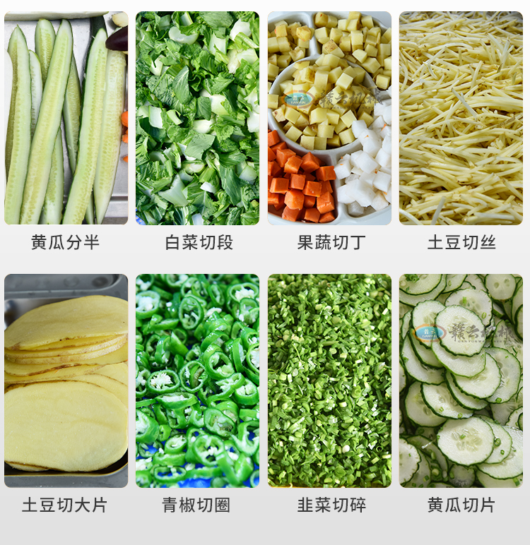 用于果蔬清洗、去皮、切菜、切片、切絲、切丁、切段、切碎、切沫、脫水等加工設備。