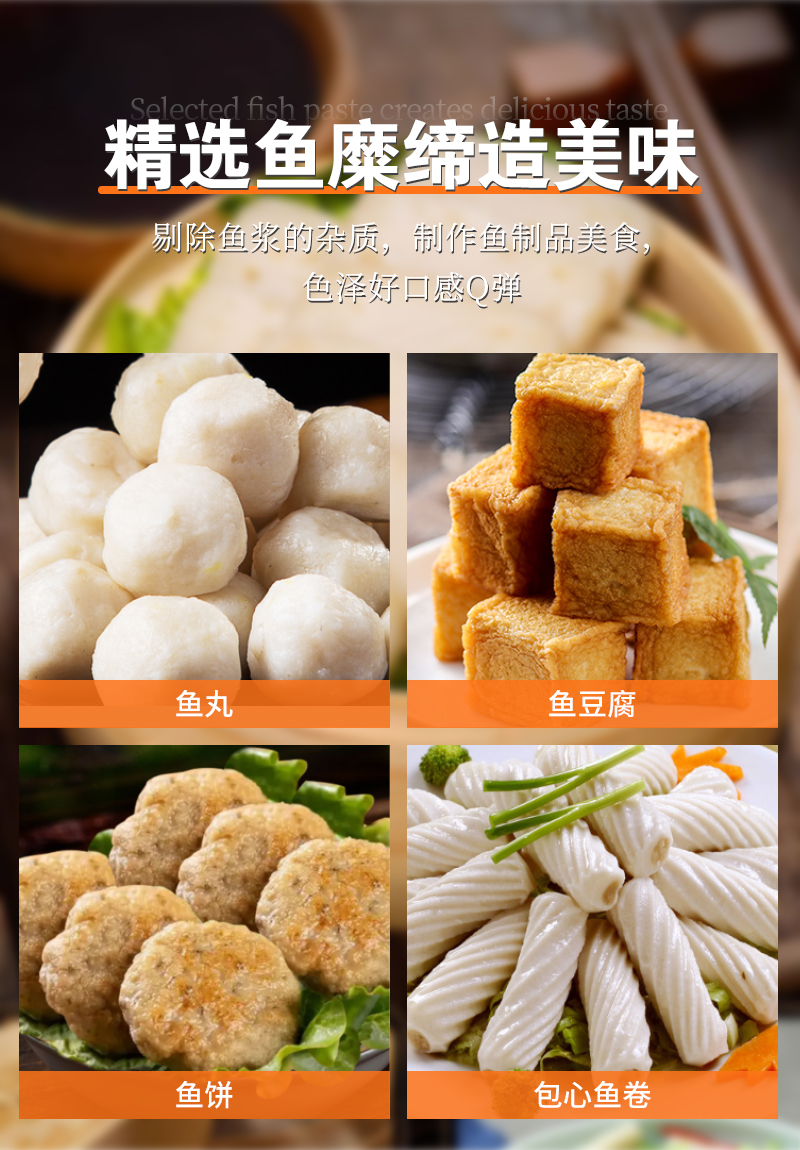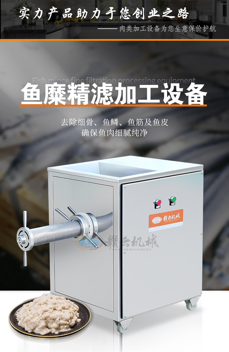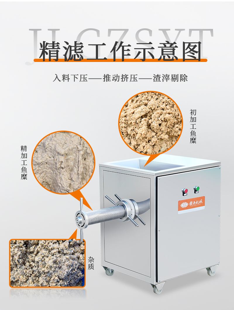 用于去除殘留在魚肉中的魚刺、魚細骨、魚皮、魚鱗、魚筋等雜質,提升魚肉品質。