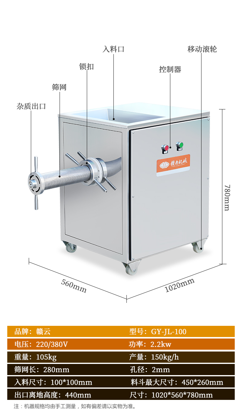 100型魚糜精濾機