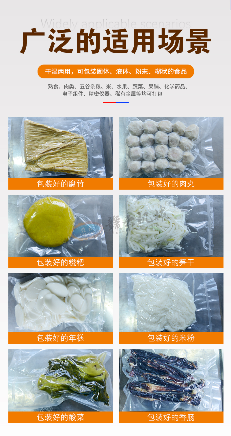 用于各種食品的抽取真空進行袋裝保鮮,防止食品氧化霉變、防潮,延長貨架期。