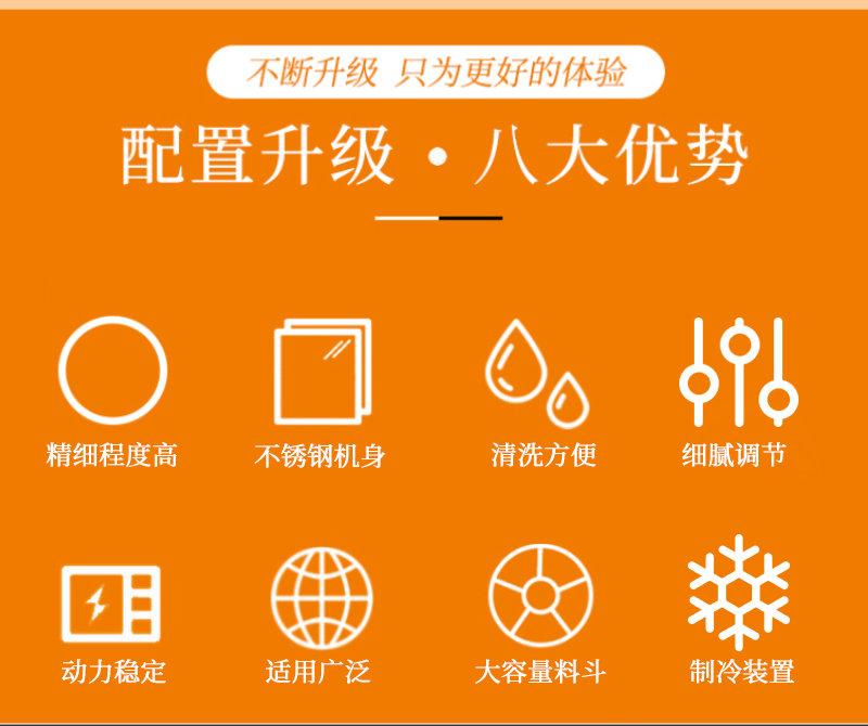 專為食品等原料加工設(shè)計,配備三層磨齒精磨技術(shù),支持肉漿/堅果/藥材等上百種物料加工,可調(diào)節(jié)式細膩度。