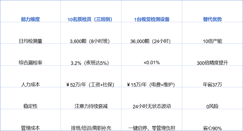 當(dāng)人工檢測在速度、精度、成本的三重維度被全面超越,“1臺設(shè)備=10名質(zhì)檢員”已成現(xiàn)實。某龍頭賭具廠引入色子六面視覺檢測設(shè)備后,不僅年省人力成本37萬,更將客戶退貨率壓降至0.02%(行業(yè)平均1.5%)。這不僅是技術(shù)替代,更是一場品控體系的升維競爭——