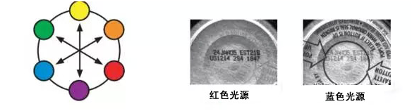 良好的光源顏色選擇可以使需要被觀察的特征與需要被忽略的圖像特征之間產(chǎn)生最大的對比度,即,特征與其周圍的區(qū)域之間有足夠的灰度量區(qū)別,從而易于特征的區(qū)分。為了最大程度區(qū)分被觀察物和背景,通常選擇互補(bǔ)色光源。以色輪為參考,采用色輪上相對的顏色能突出被照物。例如,當(dāng)被觀察物為綠色時,選擇紅色光源背景能提高對比度。