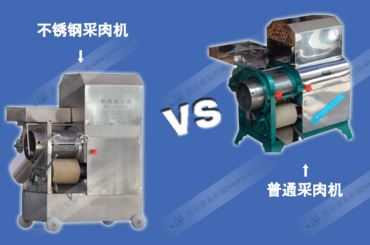 從產(chǎn)品的細(xì)節(jié)圖中可看出普通采肉機(jī)和不銹鋼采肉機(jī)的品質(zhì)區(qū)別。