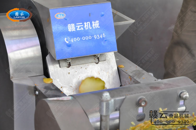 贛云工作人員演示多功能切菜機(jī)的切菜效果厚薄調(diào)節(jié)-調(diào)試客戶所需要求厚薄。