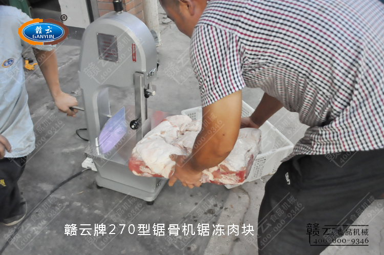 凍肉塊一般都是采用凍肉刨肉機(jī)加工處理刨成片狀,一般大型凍肉制品加工廠才會(huì)使用,但是小型的食品加工廠只是偶爾用到,今日贛云告訴你,凍肉塊也可以用贛云牌270型商用小型鋸骨機(jī)切割,而且切面整齊,機(jī)械占地面積小,不損傷肉類組織細(xì)胞,除了可以鋸凍肉,都凍骨頭、新鮮排骨、凍魚等切割效果也非常好。
