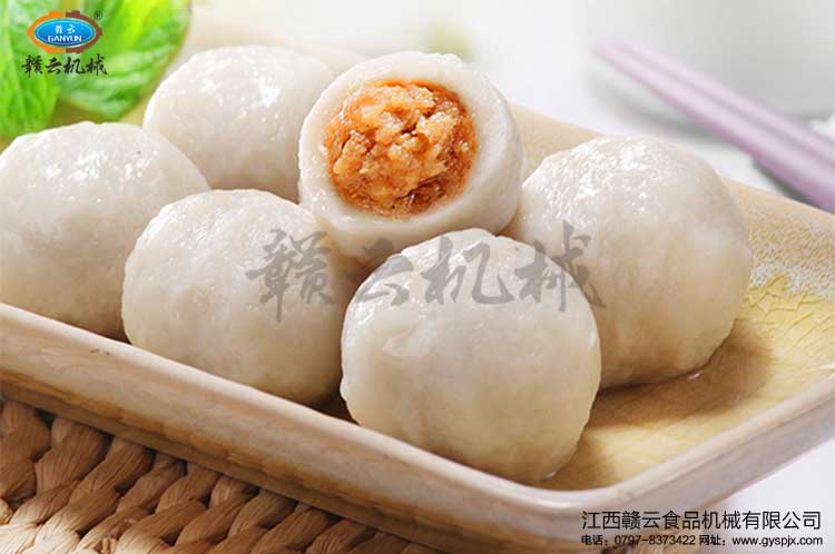 放入包心肉丸成型機(jī)內(nèi)成型包心魚(yú)丸