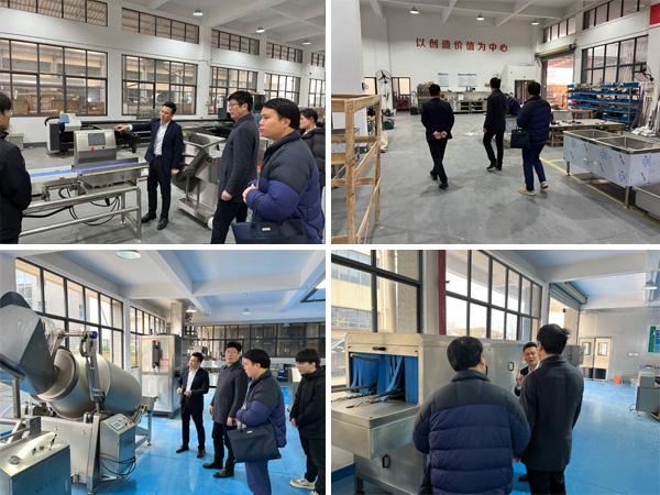 在張繼云董事長(zhǎng)的陪同下,吳所長(zhǎng)一行參觀了公司展廳,深入了解肉類自動(dòng)化加工設(shè)備、果蔬高效處理生產(chǎn)線等核心產(chǎn)品的功能與應(yīng)用場(chǎng)景。重點(diǎn)介紹了設(shè)備在降低人力成本、提升加工效率方面的創(chuàng)新設(shè)計(jì)。