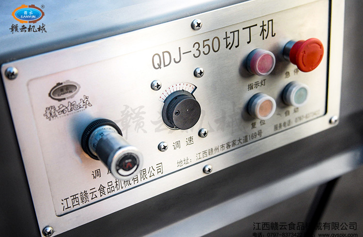 控制面板采用不銹鋼磨砂處理,激光雕刻公司logo,企業(yè)名稱及按鍵指示,使得產(chǎn)品具有金屬光澤,凹凸有序,一眼望去,讓我們感覺它就是切肉丁機(jī)中的王者,無(wú)形之中透入著王者霸氣。