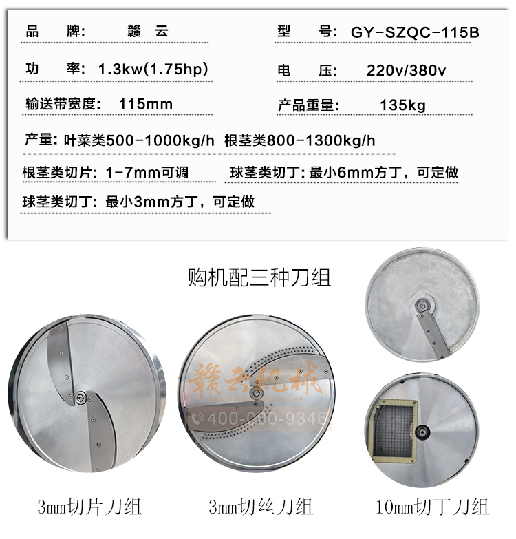 115B型切菜機是一種簡單,款式新穎,多功能機清洗方便,干凈衛(wèi)生,具有質(zhì)量可靠的優(yōu)點。一般適用于酒店、飯店、餐廳、食堂等。切菜機切面質(zhì)量好,效率高,節(jié)省人力,省時省力,安全高效。所以,切菜機越來越流行,是蔬菜加工行業(yè)的理想設(shè)備。