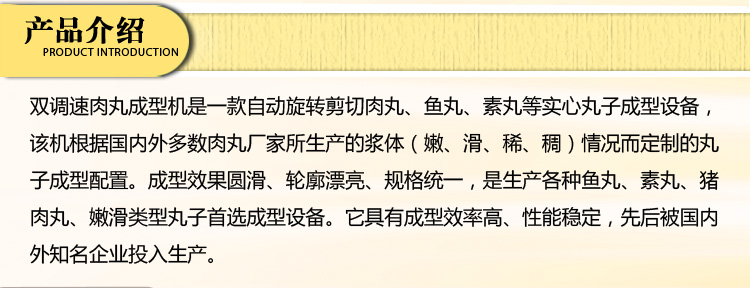 雙調(diào)速肉丸成型機(jī),這款肉類加工廠必備的設(shè)備,可以制作實(shí)心魚丸,素丸,肉丸等,是一款自動(dòng)旋轉(zhuǎn)剪切機(jī),制作出的肉丸可以銷往各地,這款肉丸成型機(jī)在食堂,飯店、工廠等,是必不可少的一款加工設(shè)備,深受客戶青睞,該機(jī)根據(jù)國(guó)內(nèi)外多數(shù)肉丸廠家所生產(chǎn)的漿體(嫩、滑、稀、稠)情況而定制的丸子成型配置。成型速度可調(diào)90-500粒每分鐘,成型效果圓滑、輪廓漂亮、規(guī)格統(tǒng)一,是生產(chǎn)各種魚丸、素丸、豬肉丸、嫩滑類型丸子首選成型設(shè)備。它具有成型效率高、性能穩(wěn)定,先后被國(guó)內(nèi)外知名企業(yè)投入生產(chǎn)。