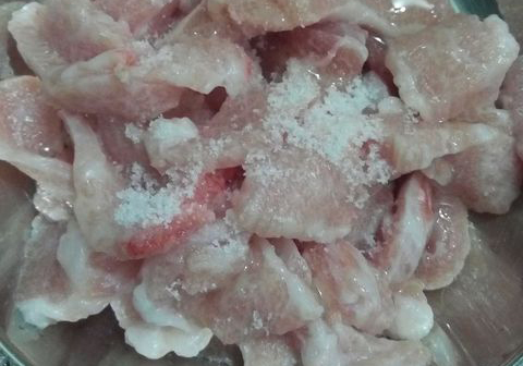 腌制時加入鹽分使肉組織部分脫水,同時由于腌肉產(chǎn)生的滲透壓,制止了有害微生物的生長繁殖,從而達到防腐的目的。