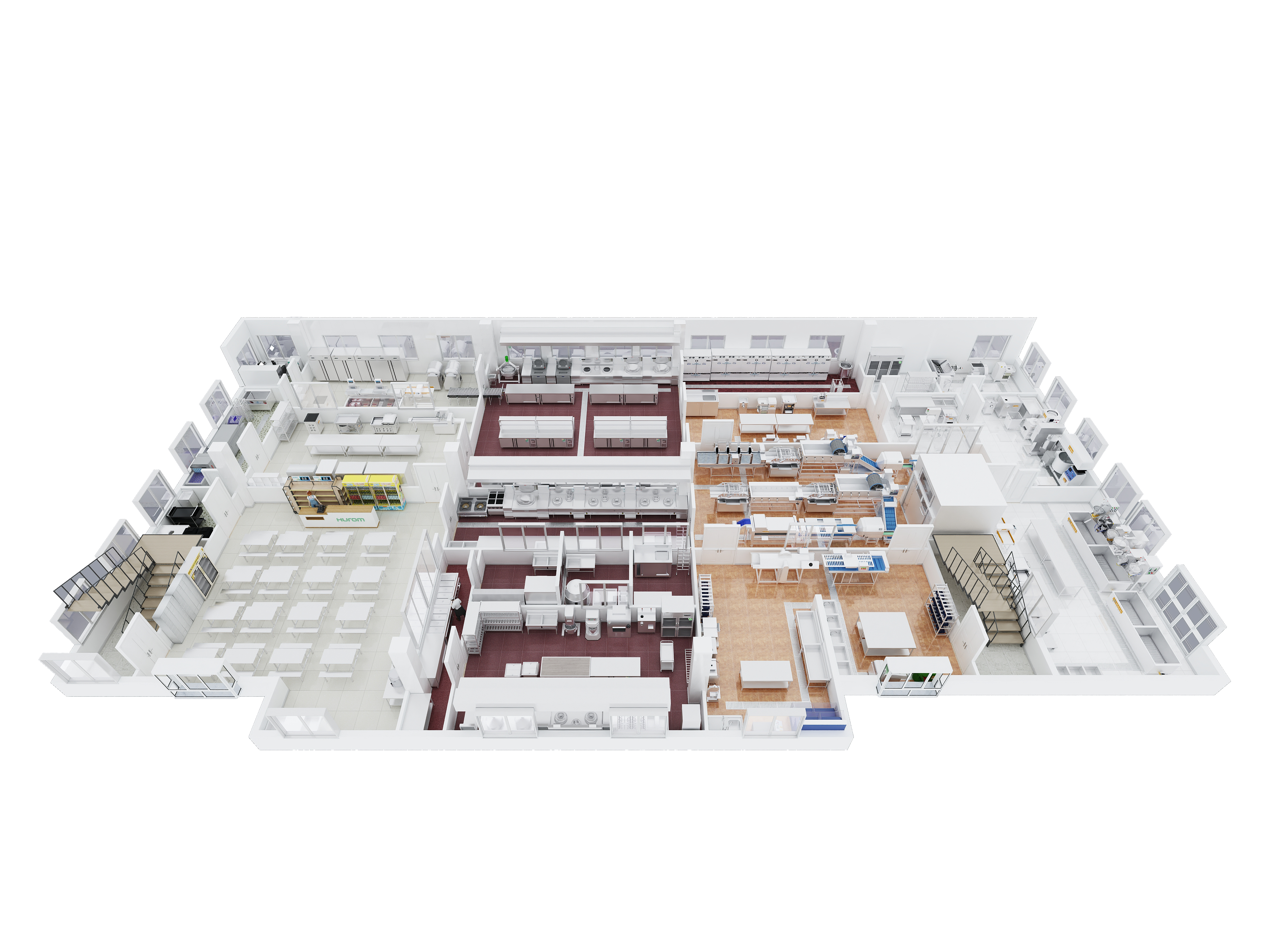 實現(xiàn)從投料、翻炒、出鍋的高效化和標準化;米飯區(qū)配備了智能化全自動米飯生產線,能實現(xiàn)45秒鐘生米變熟飯、