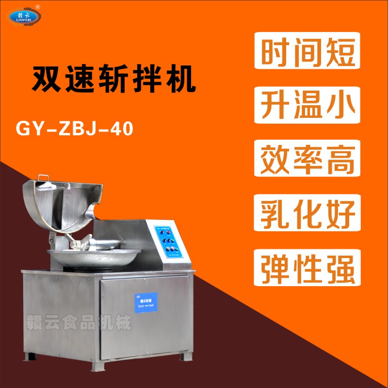 雙速斬拌機利用斬刀高速旋轉(zhuǎn)的捶打作用,將物料及輔料捶打成肉餡或肉泥。使物料的捶打時間短,溫升小,提高了物料的細(xì)膩度,可充分提取蛋白,使產(chǎn)品具有彈性強、乳化結(jié)果好、出品率高等特點。 她不但在肉類加工中有著高效的作用,而且能實現(xiàn)巧克力、杏仁蛋白軟糖、奶酪、水果等食品類的加工,有效保證產(chǎn)品的保質(zhì)期。